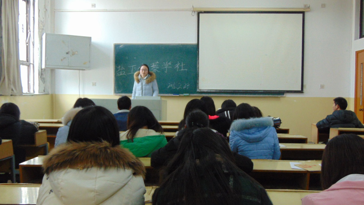 首先,指导老师姜华给各位陶学子拜了个晚年,希望各位陶学子在新的一年中学业进步!接下来,姜华老师对上一学期伯藜学社的工作、活动做了总结。在工作方面,老师肯定并赞扬了社长、部长们的工作以及他们为此所付出的艰辛努力,而且希望各位陶学子能够理解并积极配合他们的工作。在活动方面,老师指出大部分陶学子都能够参与到多姿多彩、生动丰富的活动中,是整个社团发展的进步。她呼吁新学期陶学子要全员出动,多多参与各项活动,如:辩论赛、创业大赛、志愿服务等,姜老师对此寄予厚望,鼓励有意向、有兴趣的陶学子积极参与。 作为陶学子,我们更要懂得心怀感恩,回报社会。对此,老师提出学社可以多开展一些志愿活动,如去福利院看望孤寡老人,关爱留守儿童等,这不仅可以提高个人修养,还可以提高我们伯藜学社的知名度,一举两得。其次,老师指出部长和干事之间要加强沟通,期望部长能够了解干事平时的生活与学习情况并及时反馈给老师。最后,姜老师如父母般谆谆教导我们陶学子应认真学习,要根据自身实际情况,合理制定计划。
