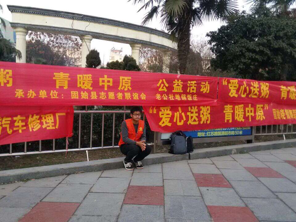 2016年1月17日,南通大学交通学院14级陶学子刘鹏程同学以志愿者的身份参与了由河南省各地公益组织、省委、日报、青年联合会主办,中原联盟、河南义工联盟以及爱心企业承办的“爱心送粥•青暖中原”活动。凌晨5时许,他端着由固始县志愿者联谊会联合爱心餐饮企业“老公社地锅”熬制的腊八粥”,在县城3处繁华地段向过往的行人免费发送。