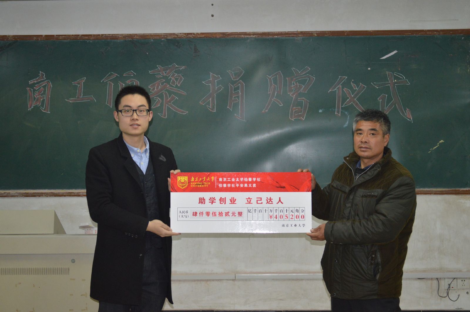 2015年12月31日,由南京工业大学伯藜学社和江苏南京市浦口区沿江镇残联共同举办的“平安果义卖”捐助仪式,在南京工业大学厚学楼208隆重举行。南京工业大学伯藜学社指导老师温健阳、南京工业大学伯藜学社社长宋军锋、受助人家属李爷爷出席了本次捐助仪式。