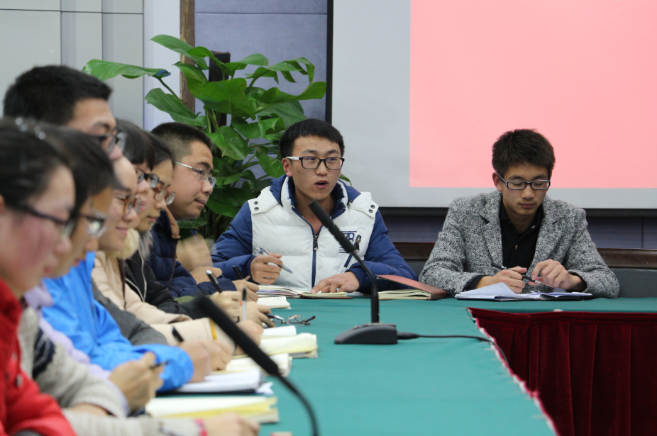 下午3:05,2015级陶学子交流座谈会在1307会议室正式开始。张利伟秘书长和郑哲老师面带微笑步入会议室,受到了在场所有陶学子的热烈欢迎。见面会伊始,张秘书长首先对15级陶学子的加入表示欢迎,并鼓励大家要利用好伯藜这个平台努力发展自己,强调了伯藜学社不仅是开展慈善工作,更重要的是开展促进陶学子发展的工作,陶学子不仅是参加学社,更要积极参与,提出自己的想法,并提出学社本学年的重点是创业项目,基金会将全力支持创业的陶学子,为其提供技能、资金等资源。随后,郑哲老师为15级陶学子详细介绍了基金会的现状及发展愿景,他说:“我们不仅授人以鱼,更要授人以渔,基金会将争取超越慈善,让陶学子得到更好的发展!”互动环节大家踊跃发言,来自体院的陶学子周玲真挚地说道:“我有一个小家和一个大家,伯藜学社这个温暖的大家庭帮助我成才,带给我温馨,它既是我们陶学子人生的起跳板,更是我们温暖的港湾!”张利伟秘书长听后,十分恳切地说道:“随着新一届陶学子的不断加入,我们组成了一个巨大的‘人才库’,大家互帮互助,共同成长。基金会也郑重承诺:只要在35岁之前你还拥有创业意愿,即使你已经毕业,基金会都会全力帮助大家!”在场的所有陶学子纷纷用热烈的掌声做出了回应。