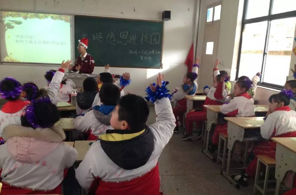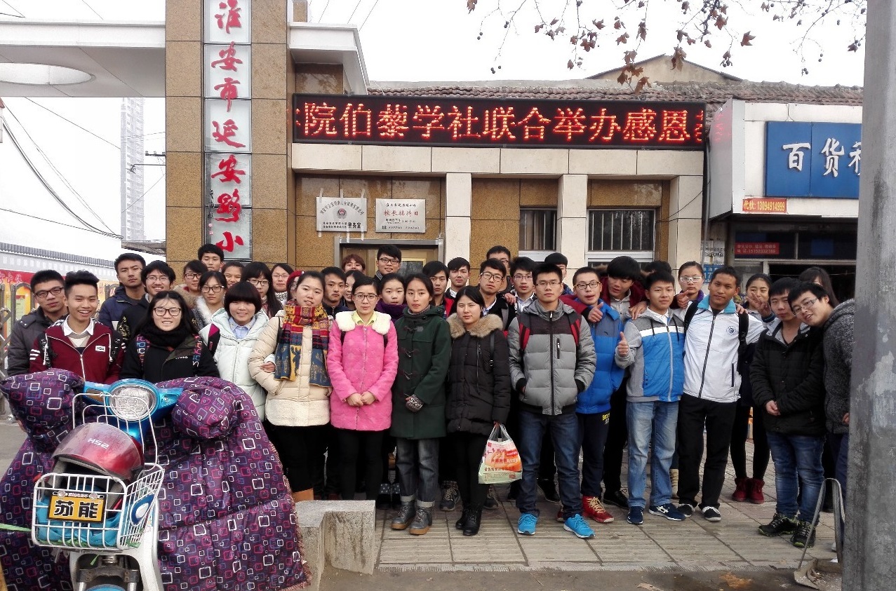 2015年12月25日,由淮阴工学院伯藜学社组织部主办的“感恩伯藜之圣诞感恩进校园”主题班会活动成功举办!陶学子们再次来到淮安延安路小学,在小朋友们的热情欢迎中以部门为单位进班宣传。