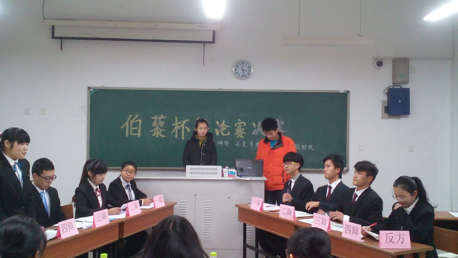 正方四名选手:孙颖、闫宁宁、王佳俊、诸彩蝶 ,他们的论点是:这是一个看脸的时代。反方的四位选手:张龙、郭文煜、杨家俊、陆阳 ,他们的论点是:这不是一个看脸的时代。