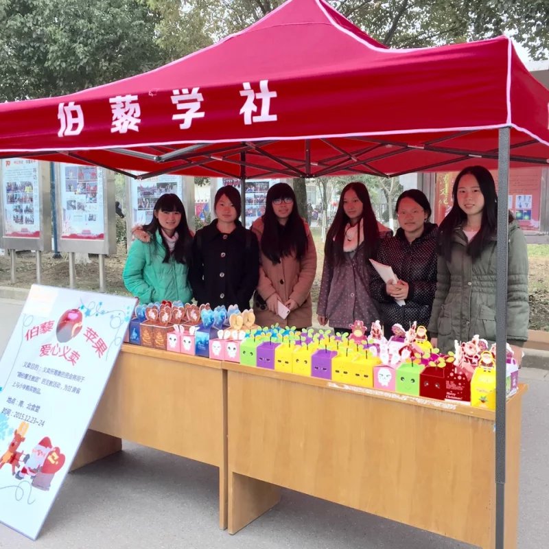 苹果义卖,是作为大学生的陶学子体验生活、回馈社会、具有积极意义的一次公益活动。在社长张腾月和丁阳阳的带领下,各个部门提前了一周就开始进行了准备。文宣部负责打印了海报和横幅、并在qq以及微信等平台进行宣传。财务部监督所需的平安果的采购情况,负责这两天日销售数量及收入的统计工作,并在每天活动结束后对平安果和财务进行清点。外联部负责活动程序的安排以及人员的分配,保证活动安全有序进行。在学校的南北食堂就可以看到伯藜的陶学子们的身影,大家都在为这场活动努力着。在此期间,两位社长也会去现场询问一下销售的情况,并且为大家带去了小板凳。陶学子们感受到了伯藜大家庭的温暖。陶学子们也轮番值班,这不仅有利于社员之间的友谊并且 也增加了社团的凝聚力!