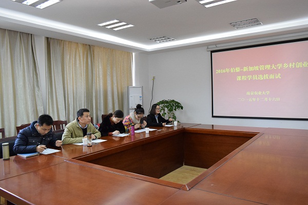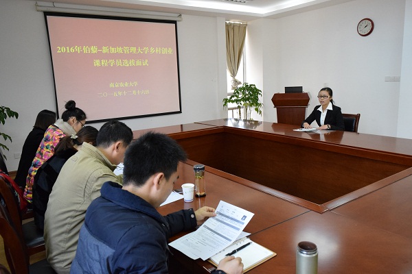 2015年12月16日下午,2016年“伯藜-新加坡管理大学乡村创业课程”学员选拔面试在行政北楼D502举行。学工处相关老师担任了此次面试评委,共有17名创业意向浓烈的“陶学子”参与了此次面试。