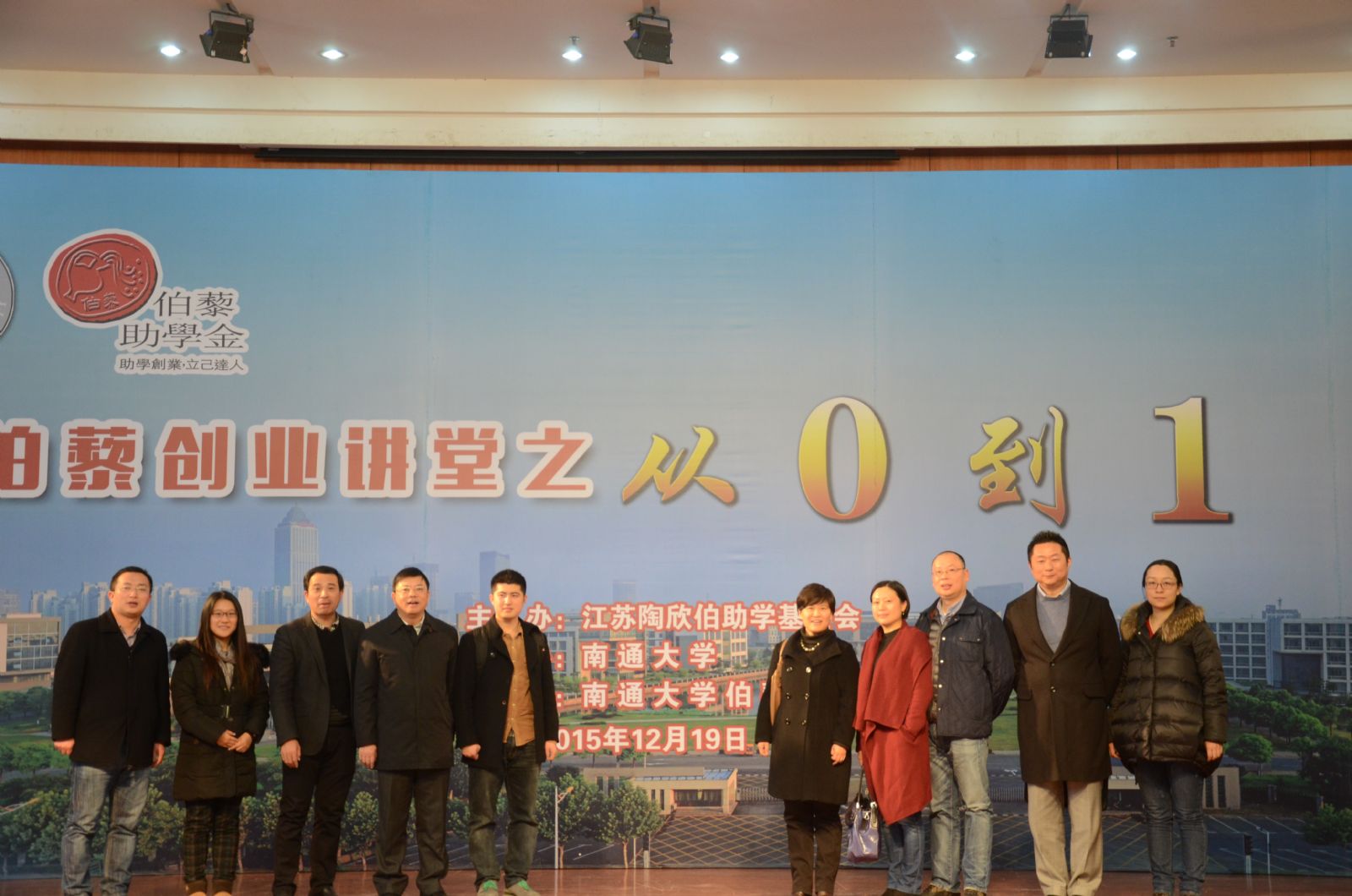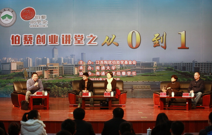 2015年12月19日上午9:30分,伯藜创业讲堂“从0到1”于南通大学大学生活动中心成功开展。出席本次讲堂的嘉宾有:前人人网董事、CFO黄辉女士;北极星亚洲区总经理陶学者张青女士;美丽顾问创始人钱宝祥先生和伯藜创投管理合伙人秦志勇先生以及伯藜创投孵化器CEO钱琼炜先生。