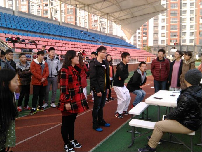 素拓活动刚开始的第一个小游戏名称叫做“你要几碗胡辣汤”。陶学子在游戏开始之前都认真练习,当然在游戏过程中也取得较好的成绩。紧接着进入第二个游戏的环节,游戏名称是“全能小射手”。规则是每组2-5人,在画好的线外对设定好的篮筐进行投篮,球必须要队友捡回来传递。在规定的1分钟内投进球的个数为所得分数。在这个游戏环节中,陶学子组成的团队表现很好,投进了22个,是小组比赛的第一名。团队成员都沉浸在兴奋与喜悦之中,下一个游戏是“瞎子背瘸子”,游戏规则是组员之间互相配合,一个当“瞎子”,用纱巾蒙住眼睛,一个扮“瘸子”,为“瞎子”指引路,绕过路障,达到终点,最早到达者,为赢。这个是财务部部长陈文林和副部韩泽伟完成的,用时较短并且基本上都绕过了障碍物,成绩当然也是小组比较靠前的。最后一个游戏是“谁是卧底”,规则是10人一组,分两队。单独给每人一张字条,上面写着某种东西,有一个人的不一样但是和别人的类似,互相不知道,描述纸上的内容,然后另一队猜,依次淘汰,然后反转。这个游戏环节中陶学子们密切配合,很快就完成了,并取得了满分。