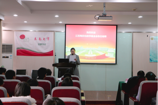 会上,江雪华老师予以致辞,代表学校对江苏陶欣伯助学基金会张利伟秘书长一行表示欢迎,并感谢江苏陶欣伯助学基金会长期以来对我校教育事业的支持和对东大学子的关心,同时,对受助的同学提出了殷切的期望,希望他们在今后的学习、生活过程中常怀一颗感恩之心,将基金会的点滴爱心传递给更多需要帮助的人。张利伟秘书长详细的介绍了基金会与学校协同育人的理念和决心,并鼓励东南大学陶学子学以致用,积极参加到当下的创业大军中去。