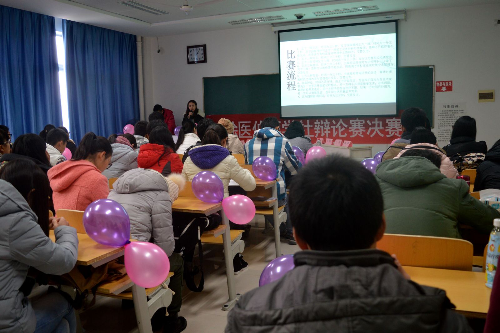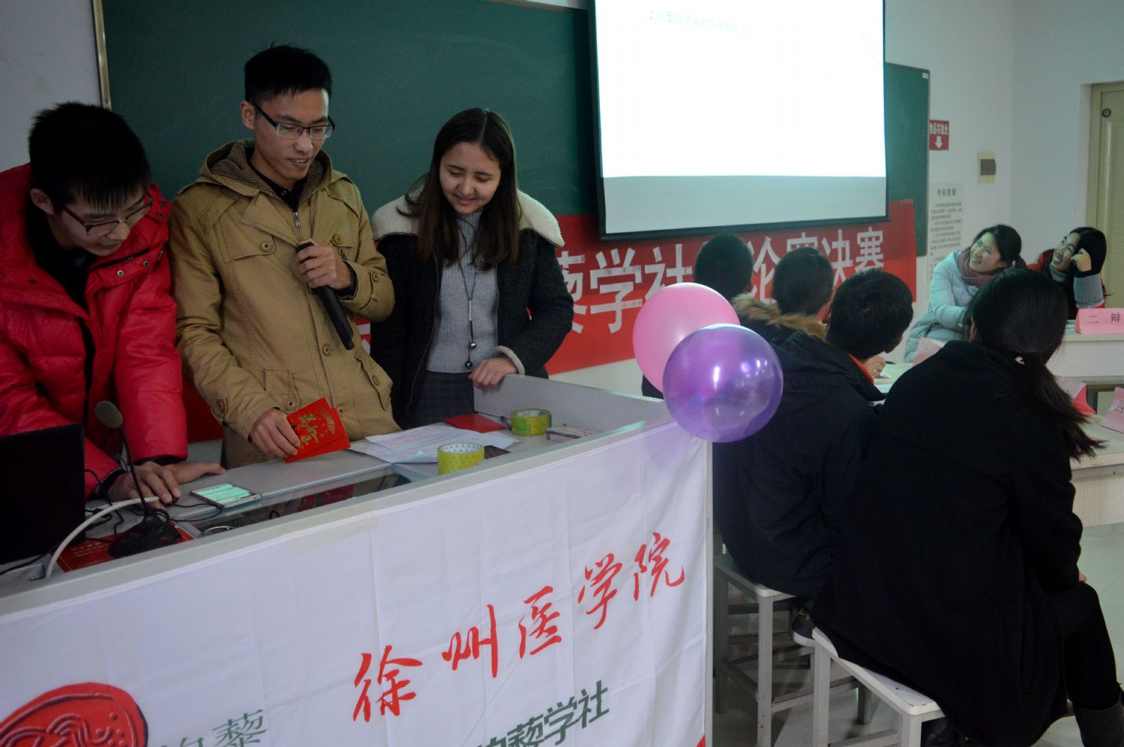 2015年12月12日下午,经过初赛复赛的激烈比拼,徐医伯藜学社“医路向前”辩论赛决赛在我校科技楼E315如期举行。担任本次比赛评委的有特邀嘉宾医学技术学院14级最佳辩手冯钰、临床医学系14级最佳辩手韦斌、麻醉学院14级优秀辩手杨冬晓以及我社社长程玉佳。共有70多位伯藜学社陶学子出席本次活动。