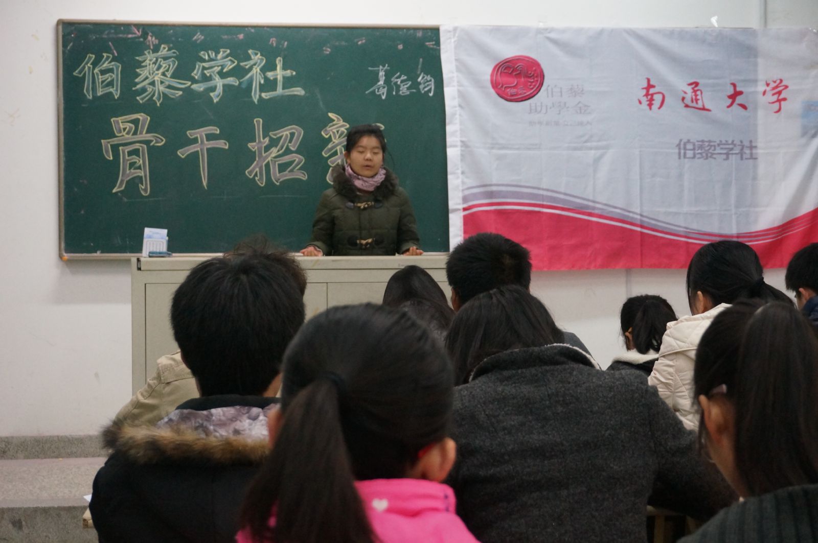 2015年12月5日晚上六点钟,南通大学伯藜学社在3#103开展了骨干招新的面试。