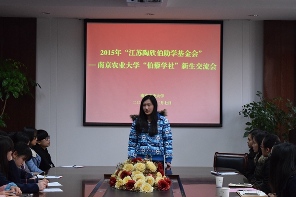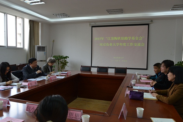 2015年12月8日下午,江苏陶欣伯助学基金会—南京农业大学2015年度工作交流会于南京农业大学行政北楼进行。江苏陶欣伯助学基金会秘书长张利伟先生、行政总监刘萍女士、项目主管郁鑫女士,南京农业大学学生工作部(处)部(处)长刘亮、副部(处)长吴彦宁、教育发展基金会办公室主任狄传华及学生事务管理中心各位老师等出席本次会议。南京农业大学伯藜学社负责人陈政、各部门负责人及部分陶学子参与此次会议与交流。