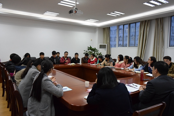 下午两点,基金会老师与学工处老师交流会于行政北楼D502举行。刘亮首先代表学校向基金会多年来对我校资助工作的关心与支持表示感谢,介绍了我校2015年“伯藜助学金”评审及伯藜学社的情况,并就伯藜学社下一阶段的工作提出了展望和规划。