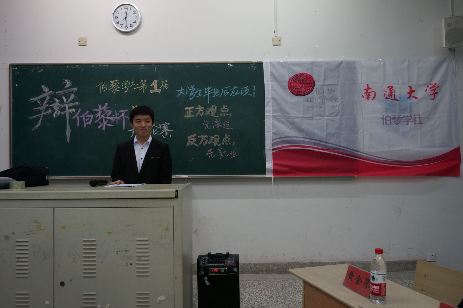 为了锻炼陶学子的思维应变能力,引发陶学子对毕业发展的思考,南通大学伯藜学社兴趣部于12月4日下午6点在主校区教学楼3号楼103室举办了伯藜学社第一届“伯藜杯”辩论赛。一共54名陶学子参与了本次活动。
