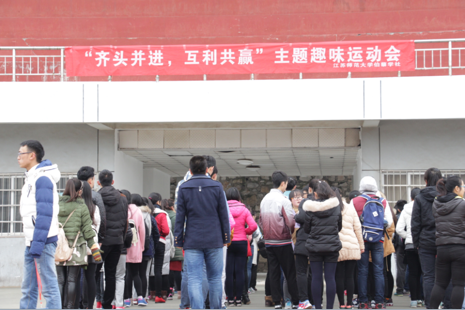 踩着2015年的尾巴,江苏师范大学伯藜学社于2015年12月5日上午9点半在江苏师范大学泉山校区操场开展了以“齐头并进,互利共赢”为主题的趣味运动会,此次活动由综合部主办,13-15级所有陶学子均参与其中。此次趣味运动会的举办不仅是为了响应基金会“在趣味中释放自我,展现自我,锤炼合作意识,积淀创业素养”的号召,更是为了增进2015级新生陶学子对伯藜学社的了解与认知,加强陶学子间的沟通与交流,增强伯藜学社的团队凝聚力,促进今后工作的有力开展。