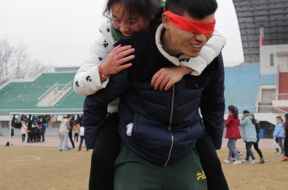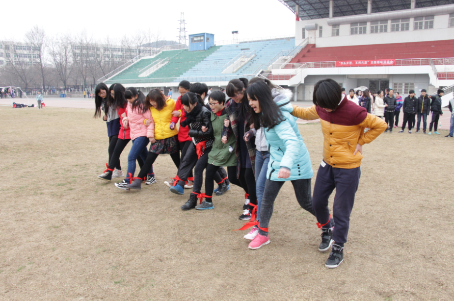 整个活动由6个游戏组成,分别是:“你是我的眼”、“数字50米”、“解手链”、“十人九足”、“链接加速”和“双人背球”。12个小组可以自行选择游戏顺序,最终以最快时间完成所有游戏的小组获胜。随着主持人口哨声一响,12个小组立即行动起来,组员们各挥其长,有出谋划策的,有积极组织的,现场顿时火热异常,呼声笑声久久回荡在操场上空。十人九足的游戏现场不断回响着陶学子们“1、2、1、2……”整齐划一的口号声,大家心往一处聚,力往一处使,一步一个脚印地往前迈着,尽管活动过程中有人落下了,也没有人埋怨与争论,而是调整步伐,重新来过。数字50米的游戏中,虽然需要各组员一次一次地往返跑,但大家都密切配合,积极战胜疲惫,当最后一张牌“梅花9”被翻开的时候,胜利的欢呼声此起彼伏。