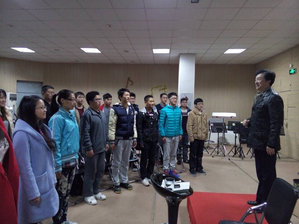 2015年12月5日9:30,小王子合唱团的首次排练于大学生活动中心交响乐团合奏大厅进行。首次排练,资助中心姜俊玲老师特地为小王子合唱团请来了国家一级演员、声乐教授、江苏省歌舞剧院男高音歌唱家赵毅老师来给热爱音乐的陶学子们指导,姜老师说:“从今天起,你们的人生中又多了一位老师,那就是赵老师!”