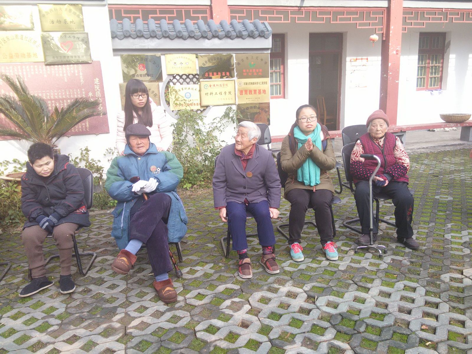 到了敬老院之后,同学们两人一组陪伴老人谈心。经历了最初略显尴尬的自我介绍之后,大部分同学都能很好地融入和老人们的交流之中,有一些同学还帮助老人打扫卫生、晒被子、陪老人散步。同学们还在院子的空地上给老人表演起了准备的节目。跳舞的同学来了一段活泼的开场舞,活跃了气氛也调动了爷爷奶奶们的注意力。唱歌的同学不甘落后,唱着特地准备的红歌,有些老人还帮着同学们打拍子或者一起哼唱。到了最后,舞台都被爷爷奶奶们“霸占”了,这边爷爷来了一首“打靶归来”,那边奶奶紧跟着一曲“北京的金山上”,还有爷爷唱起了京剧,同学们你在一边使劲儿鼓掌,现场气氛一度达到了高潮。