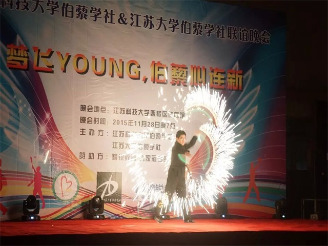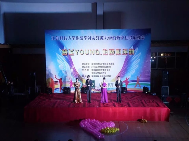 2015年11月28日,正值初冬时节,由江苏科技大学和江苏大学两校伯藜学社联合举办的“梦飞YOUNG,心连新”联谊晚会在江苏科技大学西校区体育馆顺利举办。两校伯藜学社指导老师、伯藜学社负责人以及江科大各个社团负责人莅临联谊晚会现场。