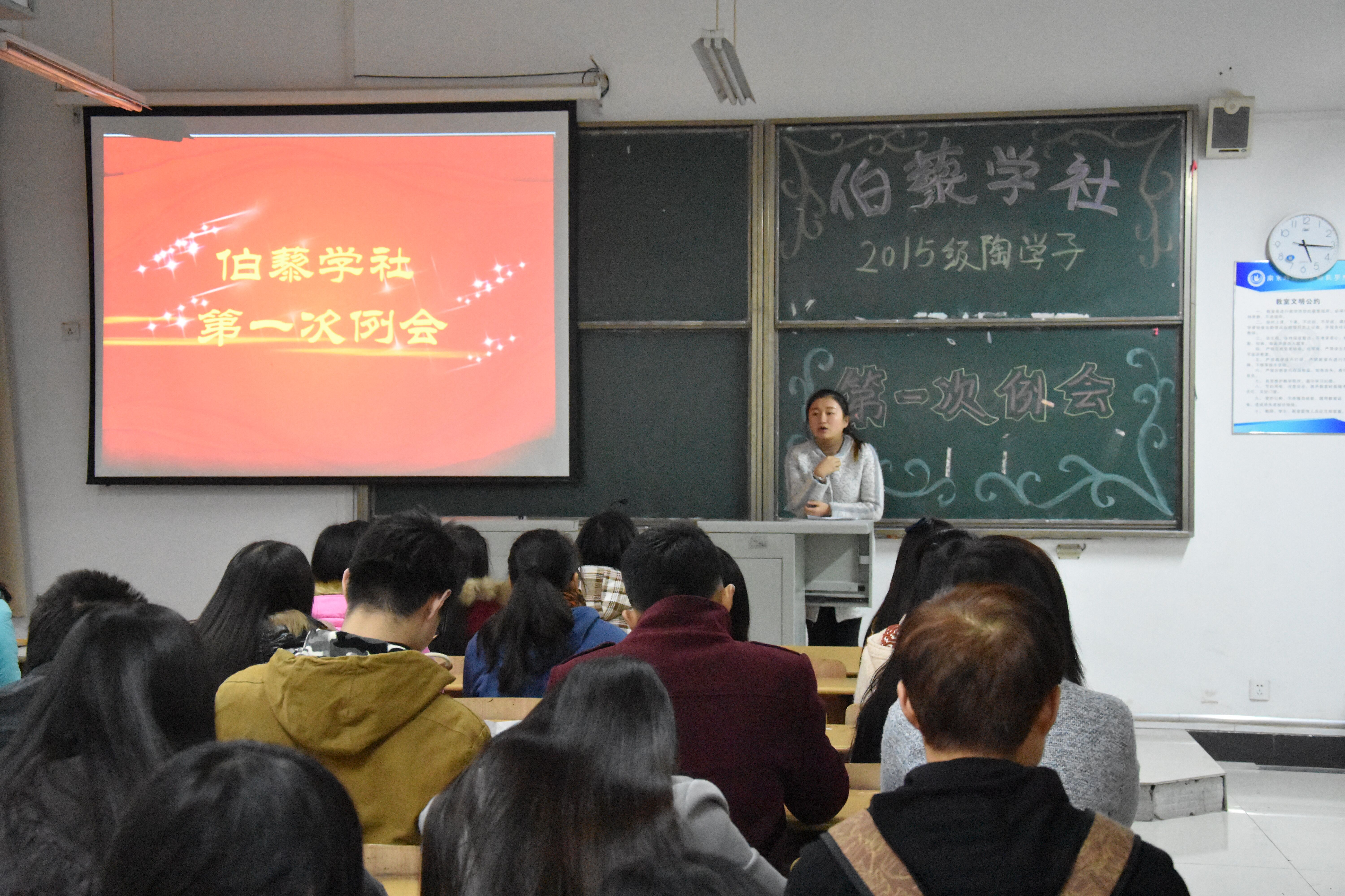 为了培养陶学子积极性,使大一陶学子尽快熟悉各部门职责,我校伯藜学社于2015年11月27日下午5点在博雅楼2107召开了换届以来的第一次例会活动。此次例会由我校伯藜学社社长郭宏主持,两位副社长协助,各部门部长、副部长以及大一所有陶学子参加了此次活动。