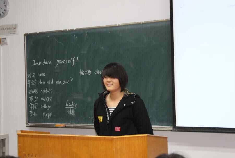 16日下午5:30,英语沙龙活动在陶学子们的热情期待中拉开帷幕。第一节课的内容是英语自我介绍,由外国语学院13级陶学子苏曼为大家讲解介绍方法。为使大家能够更好地融入到活动中,主持人李文莲首先将所有陶学子分为6大组,并真诚希望大家能够借英语沙龙的契机养成良好的英语学习习惯。随后,“苏老师”便开始了她的个人经验传授。她告诉大家,要想给他人留下好印象,首先要敢于介绍自己。当谈到自我介绍的要素characters时,她让大家分组讨论有关性格的词汇。话音一落,大家便热烈地讨论起来,很多陶学子在讨论过程中认真做好记录,讨论结束后,15级陶学子格外踊跃地举手发言,将他们讨论的结果与大家交流。大家你一言我一语地分享之后,各自都收获了许多。随后,便进入了本堂课的高潮部分――self-introduction 。陶学子们依次上台展示自我,赢得了台下阵阵欢呼。在此期间,一位陶学子为大家深情演唱了英文歌You are my sunshine,悦耳动听的歌声瞬间带动现场氛围,大家纷纷以热烈的掌声赞扬她的自信和勇气!本堂课最后,“苏老师”再次强调大家要在课后多多练习自我介绍,提高英语口语技巧。