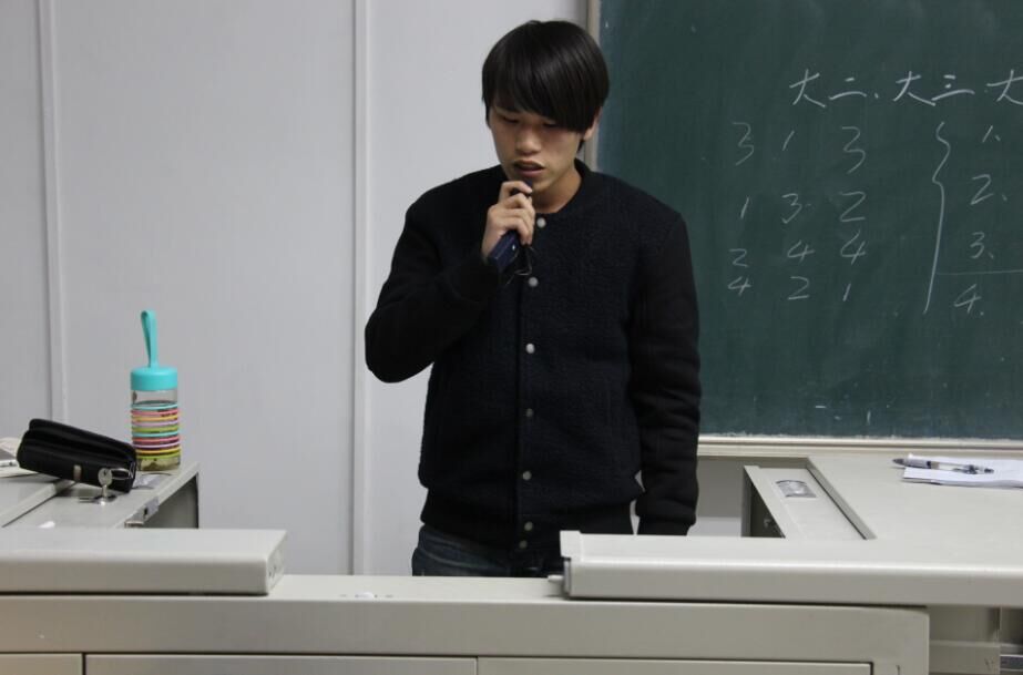 20日傍晚,大家一起做了“你比我猜”的英语趣味游戏,游戏现场异常火爆。之后的李阳疯狂英语听力训练更是让大家真切的感受了一把地道的英语发音。活动接近尾声之际,15级的张学涛上台分享了自己参与此次活动的感想,他说:“非常感谢组织此次活动的学长和学姐们,你们辛苦了!我以后会在英语学习中保持一份勇气,一份坚持,一份自信,希望伯藜学社可以多多举办此类活动,让我们学习地更多,锻炼地更多,在英语学习的道路上走得更远!”之后,13级陶学子蓝丽娟带领大家高声读出:If at first,you don’t succeed,try,try,try again!刘辉社长最后鼓励大家在以后的英语学习中要日积月累,要有勇气、有自信、有毅力。活动虽然结束了,但是我们学习英语的步伐永不停止。