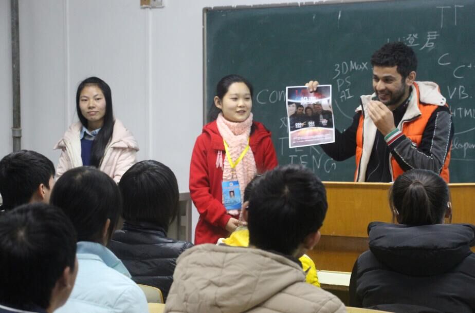 18日傍晚的活动内容最为精彩。主持人特别邀请到国际学院的三位国际友人与大家进行中外交流。国际友人的参与,更是激发了大家对英语学习的热情!三位国际友人都十分热情友好,主动上台向陶学子们做自我介绍并进行了丰富的才艺展示。中文版的月亮代表我的心打动了在场的所有陶学子,大家和着他们歌声为他们拍手打节拍,一股温馨和谐的暖流在双方心间涌动。为了表示友好,我们的陶学子也以优美的歌声和精彩的模仿秀来欢迎他们的到来,让他们感受到我们伯藜大家庭的温暖。随后,三位国际友人坐到了陶学子中间,愉快地与大家交流自己的学习生活,为大家介绍自己的家乡,分享自己来到中国的感受,并给大家提供了英语学习的方法和途径。陶学子们也热情回应并积极向他们提问,双方沟通甚是融洽。交流结束之际,陶学子们都依依不舍地与他们道别,并希望以后可以有更多的机会跟他们交流。