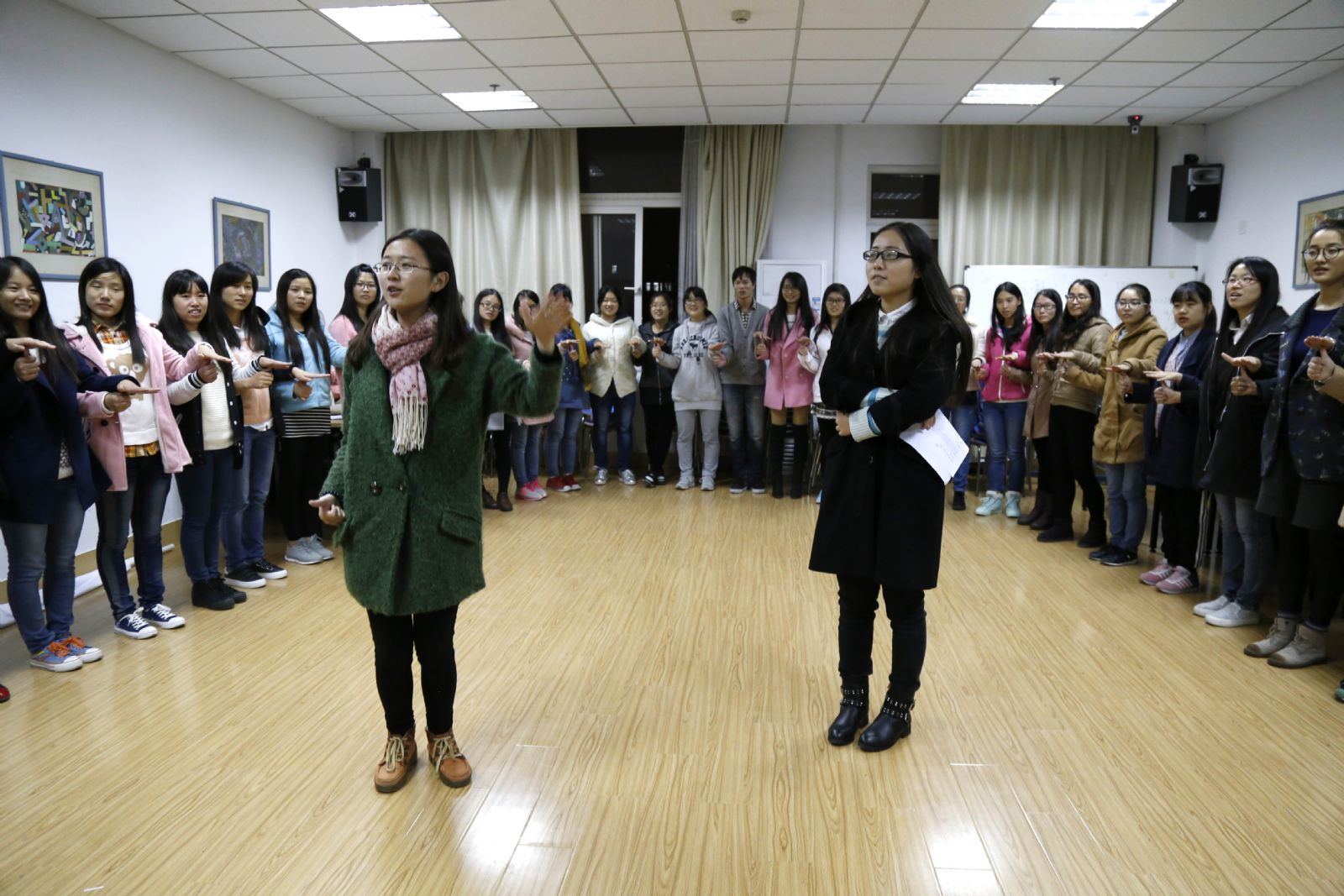 在薛欣晨老师对两位主持团辅活动的老师进行介绍之后便开始了活动。陶学子们按照老师的指导围成一个大圈,开始了第一个环节“捉小鸟”,的游戏:陶学子们的左手完全张开,右手紧握,而右手的大拇指朝上伸开,相连陶学子的左右手配合,当老师念到“小鸟”时,陶学子们需要右手从右边同伴的左手下逃开,而左手却要尽力抓住左边同伴的右手。活动中,“小鸟”引起了陶学子们一阵又一阵的尖叫与欢呼。