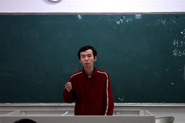 在简单的自我介绍以后,涂盟阐述了什么是辩论,并为大家讲解了江苏省辩论赛比赛的规则。他从辩论赛程序、比赛流程等方面指导大家做好赛前准备。参赛的同学就自己不理解的地方提出疑问,涂盟一一解答。