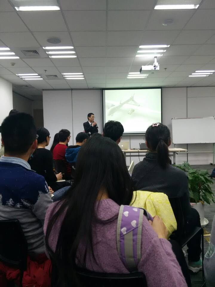 活动一开始,刘经纬老师便从自身经历出发,让我们对其有一定的了解。在这之后,重点讲述无人机的发展历史和无人机的发展前景,以及固定翼飞机和无人机的优缺点对比等,让我们对无人机有更加深刻的认识。紧接着,他给我们简单展示自己制作的无人机,同时向我们简单介绍无人机的一些硬件构造,将近一个多小时的讲解,刘老师以其独特的思维方式和语言风格让我们对无人机有了较为充分的认识。