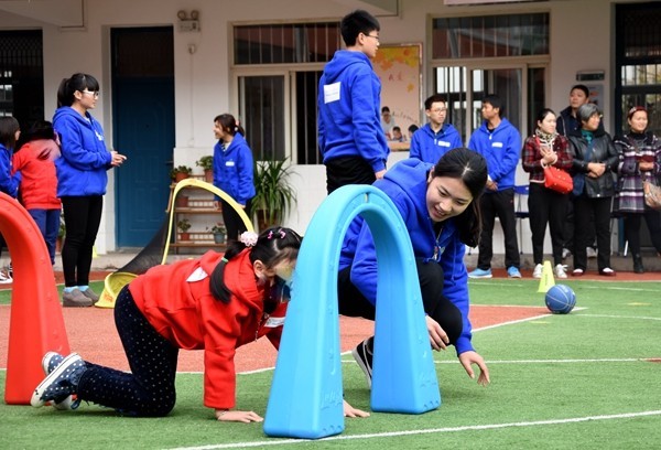11月11日上午,由南京市鼓楼区特殊教育学校主办的“2015年华东地区特奥幼儿运动员计划演示活动”,在南京市鼓楼区特殊学校顺利开展。我校副院长谭忠,鼓楼区特殊教育学校赵艳霞校长,顾红副校长以及我校28名伯藜微爱公益团的志愿者、南京工业大学8名志愿者、18名智障运动员和学生家长一同参加了本次活动。