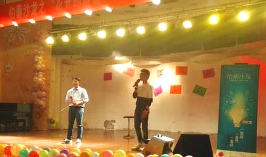 至18:40,大家陆续就坐后,主持人介绍了今晚到场的嘉宾:今晚的主角王辰。王辰在大家热烈的掌声中登上了舞台,南师大文学院播音主持系科班出生的他一出场就靠着阳光十足的外表吸引住了现场所有人的目光。他亲切地与大家问好之后献上了一首呼应着今晚主题的歌《栀子花开》,动听的歌声获得现场同学此起彼伏的掌声,之后王辰向大家简短地介绍了一下自己并且讲述了自己童年和梦想的故事,悦耳的声音和幽默的描述将现场气氛调节得非常好。在讲述自己童年时和音乐的渊源时,王辰还时不时地穿插演唱了自己小时候参赛的表演曲目,充满童趣的演唱赢得了现场观众的阵阵掌声。