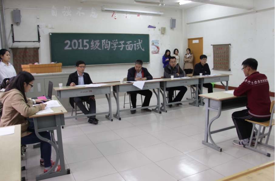 本次考核的方式是在考场内限时4分钟作答已出好的题目,题目为“你怎么看待‘贫困有志’这四个字是“陶学子选拔的一条重要标准?巴尔扎克说“苦难是人生的老师,你又是如何理解这句话?”多数同学在面试中表现得沉着冷静、落落大方,也有少数面试者则稍显紧张,有点慌乱。其中来自城市与环境学院的张彤同学就是一个良好的代表,她在面试中说道:“我们无法选择自己的出身,但是未来的命运掌握在自己手中,苦难可以激发我们的潜能,它是人生的老师,无论是锻炼了我们心理还是给予我们更多面对困难的经验教训,我们要用一颗强大的内心去面对人生中的一切挫折!”精彩的回答获得了面试官们的频频点头。他们优秀的表现,证明了贫困不是阻挡人前进的步伐,相信他们在以后的生活中会表现的更加出色。