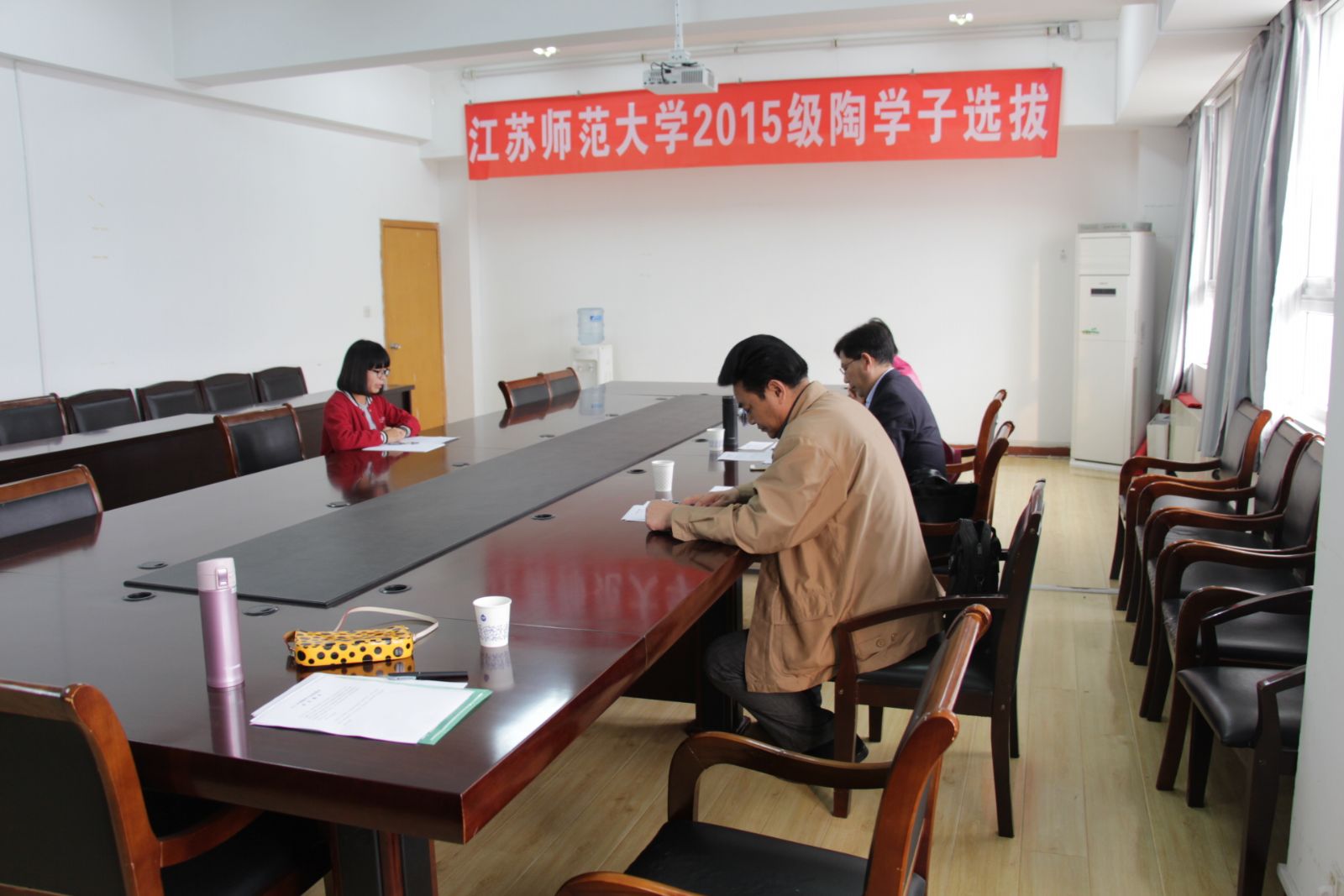 为了响应江苏陶欣伯助学基金会对陶学子“贫困有志、创新创业”的要求,进一步提高陶学子的质量,促进江苏师大伯藜学社持续蓬勃发展,我校伯藜学社于2015年10月29日下午针对来自21个院系共计60余名预选陶学子展开了一场结构化面试。主持此次面试的领导有江苏师范大学副校长刘广登教授、学生工作处崔成前处长、基金会焦正平主任、保卫处苏勇处长、团委商亮书记、学生工作处王友健副处长、何莉娜副处长。面对如此强大的面试官阵容,每位参试的同学更加真切地感受到了校方对我社的大力支持,对此次面试也愈发的重视起来。