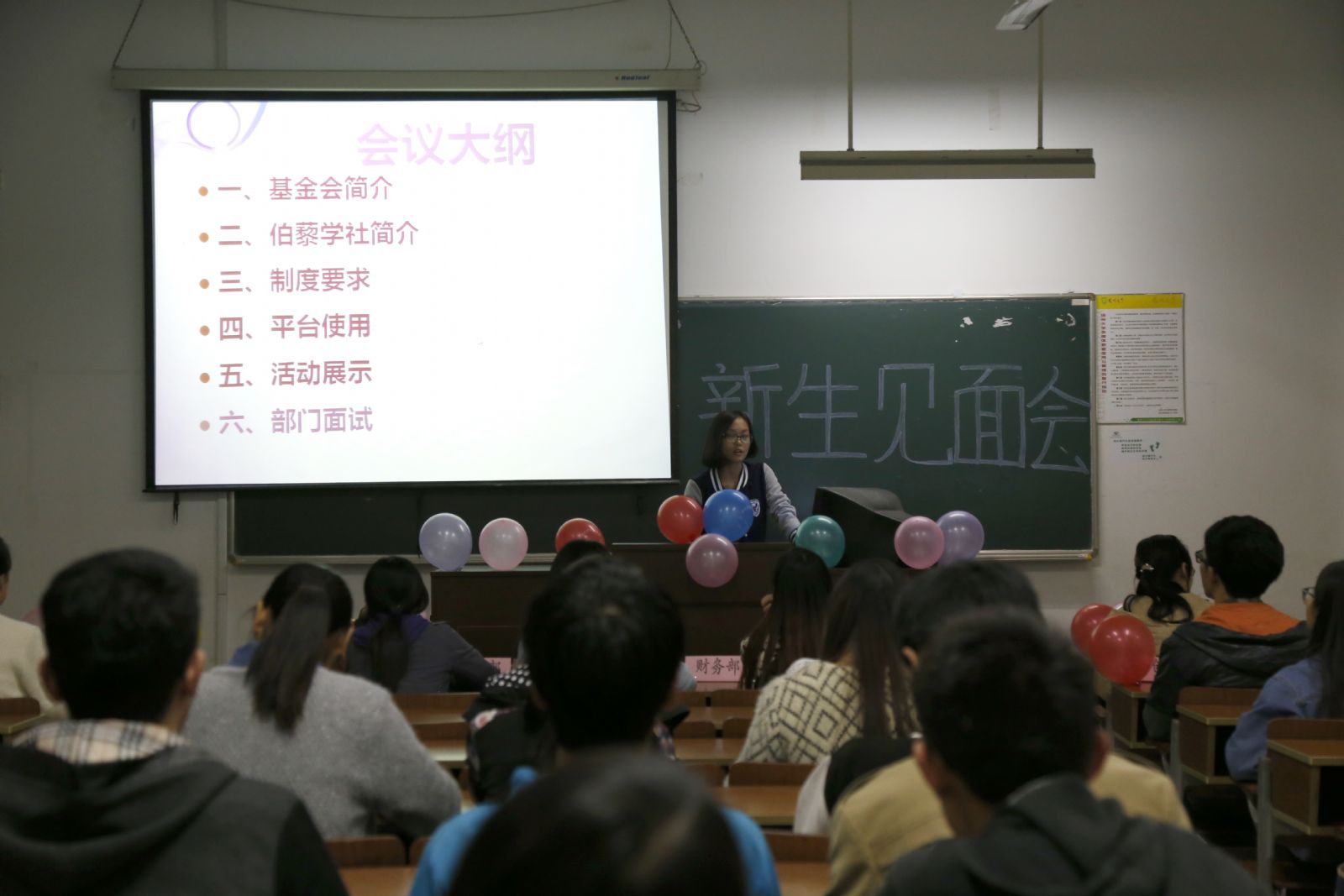 会议最后,大一陶学子们带走一个属于自己的气球(见面会会场事先布置了各色气球),“我想,这气球里装载的更多的可能是每位陶学子的梦想与青春。”学习部部长魏思敏说到。