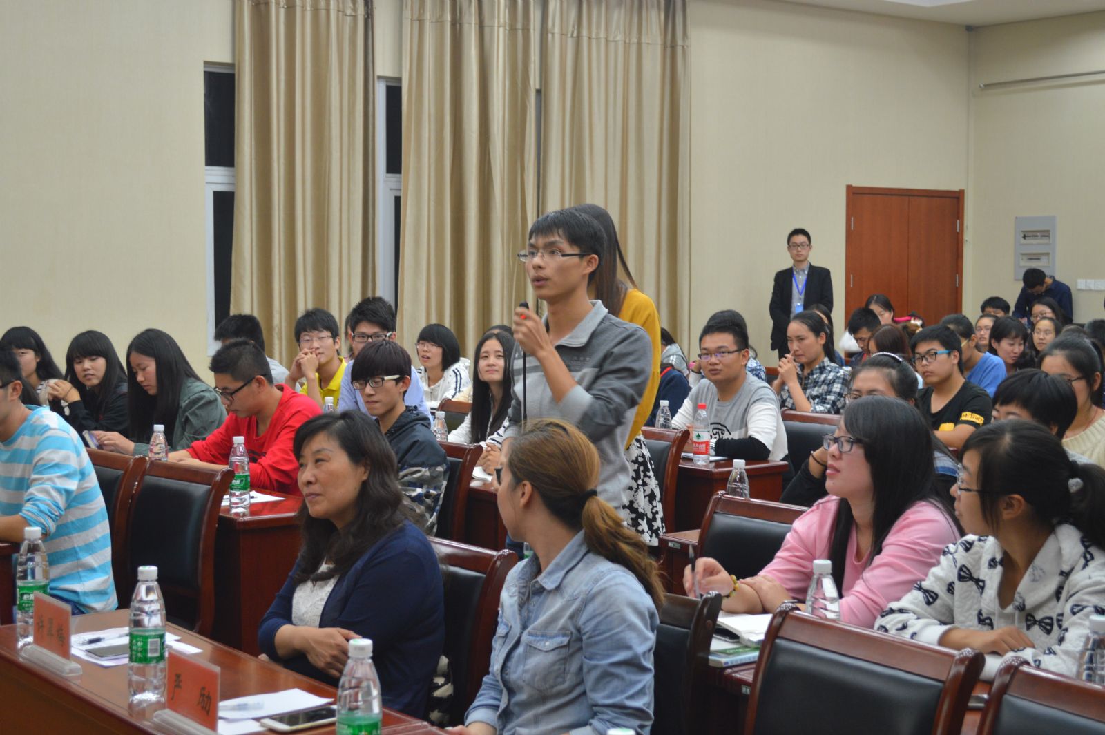 支教分享结束后,进入本次交流分享会的重要环节,我校三名经过选拔出的陶学子学长开始了他们的暑期实践分享。吴桂林学长首先为我们讲述了他在暑期参加的新加坡交流项目,以我眼中的新加坡之旅吸引了全场同学的目光,多彩而新奇的新加坡学校生活惹来了同学们羡慕又佩服的赞叹声;然后赵锦春学姐向我们介绍了中新项目,也是关于新加坡交流的经历,她的演讲精彩绝伦,时时插入励志名言,最后的视频更是激起了大家对这个项目的向往,最后由杨鼎宁同学与我们分享了他的暑期社会实践项目“风俗文化故土行”,讲述了他在家乡甘肃秦安的实践经历。整个分享过程还穿插了提问环节,现场同学们积极提问,气氛热烈。