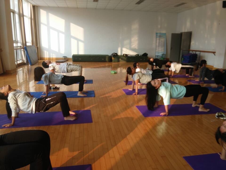 10月12日下午三点,在我校体育馆105教室,伯藜学社的社员在我校大四陶学子嵇金梅的指导下,学习了一节瑜伽课。陶学子嵇金梅,不久之后,就要离校实习,留在学校上课的日子越来越少。所以她就希望在临走之前,能够赠予南晓伯藜学社一份礼物,留作纪念。由于她在暑假刚刚学习了瑜伽课程,所以嵇金梅提出免费教授陶学子们瑜伽,即可以锻炼身体,又可以增进感情。在社员们知道这个消息后,都很开心,积极报名参加。