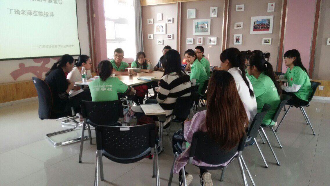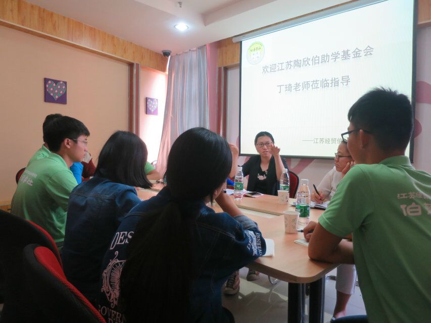 为了促进江苏经贸伯藜学社新学期的社团建设,提升新一届骨干的管理能力。2015年10月12日下午,“社团新学期骨干会议”于江苏经贸180创业孵化中心爱馨创业工作室举行。出席此次会议的有江苏陶欣伯助学基金会的丁琦老师、江苏经贸职业技术学院学工处施莎莎老师、公共管理学院党总支书记葛伟丽老师、江苏经贸伯藜学社指导老师郑扬老师以及14陶学子。