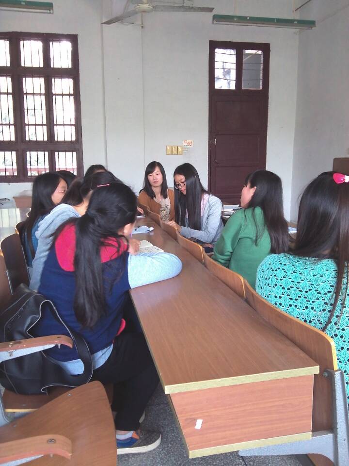 座谈会主要是请各个新任骨干对过去一年里伯藜学社的发展做出评价以及对接下来社团发展提出建议。首先发表观点的是学习部部长李秀秀,她提出,伯藜学社目前在学校里的影响力不大,希望可以在新的一年里,经过新一届陶学子的努力,可以让伯藜学社被更多的扬大同学所熟知。谢克老师对此提出了自己的见解:“社团的影响力是大家有方法地努力的结果,我建议大家可以和学校里的其他影响力大的社团合作举办活动,还要自己加大宣传力度,充分发挥新媒体的作用,比如QQ,微信,微博,还可以与其他的社联保持相互关联的良性循环关注,这样可以共同促进双方的发展呢。”之后,各个部长也依次提出了关于新一年的希望建设,并与两位老师进行了交流。