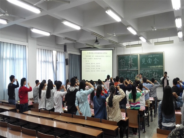 2015年10月11日江苏科技大学伯藜学社于西校区综合楼217召开了2015级陶学子见面会,此次会议由14级主任王磊主持,正副社长、14级负责人以及15级陶学子出席了此次会议。
