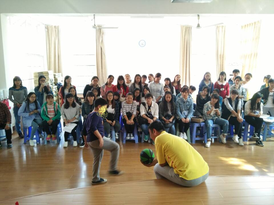 在随后的培训活动中,主持人徐向阳老师用自身的教学经验向在场的志愿者们说明了一些在照顾和教育特殊儿童的技巧;在强调教育特殊儿童们志愿者需要具备的心理素质时,徐老师通过与现场3个智障小朋友互动的实例让我们看到了这一弱势群体面临的生活现状和困难。在培训现场,徐老师也分别邀请了不同志愿者尝试与在场的智障儿童进行互动,在老师和志愿者们的耐心引导下,小朋友们依旧很艰难地演示那些简单的动作。每当他们获得一份小小的“成功”时,现场总会响起阵阵掌声。