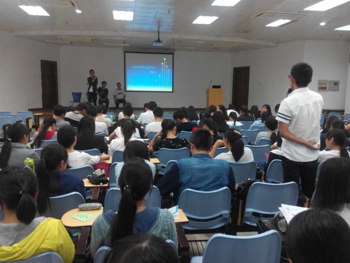 分享会伊始,陶学子们极其热情的欢迎三位学长的到来。紧接着南京师范大学高翔学长分享个人创业经验,从他目前所做出的成绩讲到对未来几年的打算,话语中无不透露着年轻人敢冲、敢拼的精神与斗志,在场的陶学子无不为学长的创业精神和独特的思维逻辑所鼓舞。第二位分享创业经历是侍建福学长,作为南中医人,我们都知道校园里有这样一款软件既能够查成绩,查课表,又能查八个一,甚至有更多功能。没错就是“微南中医”APP,而它的创始人正是侍建福。从偶然有想法到实施行动到参加各种比赛然后“微南中医app”被广大师生所孰知,这期间他付出了超乎我们想象的精力与努力。同时他也告诉在座的学弟学妹,有创业想法是件好事,但是学习同样很重要,在任何时候都不要忘记自己的本职,这对在场的所有人来说都是最温柔的告诫。最后一位分享创业经历的是已经在创业方面小有成就朱法宝学长,他讲述了自己的创业小故事,分享了自己在本次暑期创业夏令营中的心得,让我们懂得起步创业不容易,但是坚持最终一定会有收获。