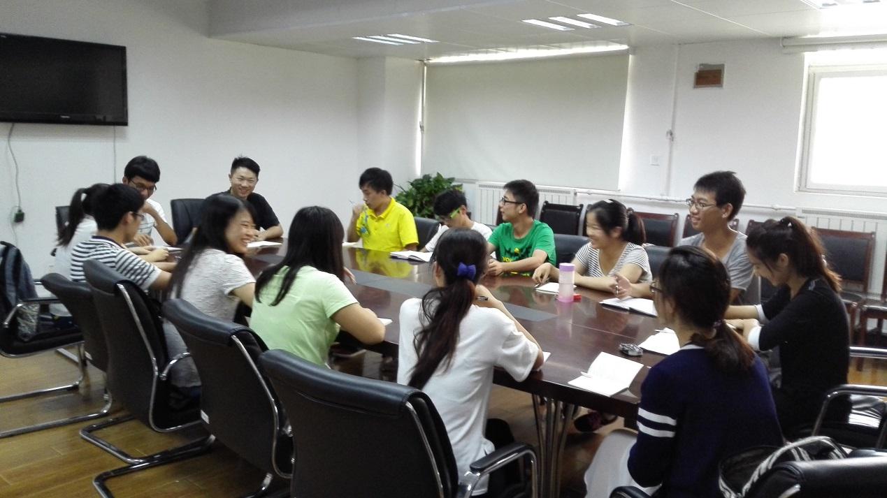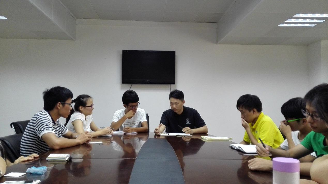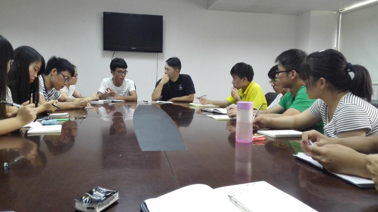 2015年9月19日星期六上午11时许,郑哲老师莅临我校,与陶学子会面。随即,交流座谈会开始。出席座谈会的陶学子是社团的14位领导干部。