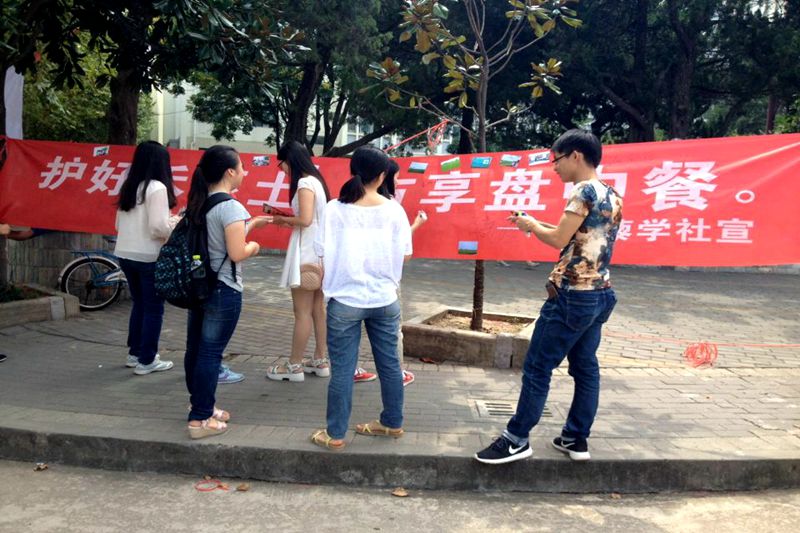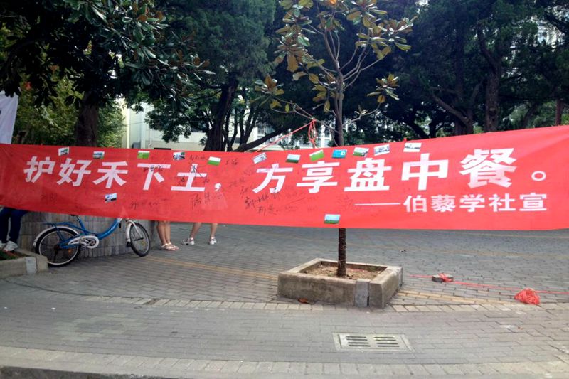 2015年9月16日,南京农业大学伯藜学社暑期社会实践小组于玉兰路发起了宣传活动,宣传活动的主题为“护好禾下土,方享盘中餐”。