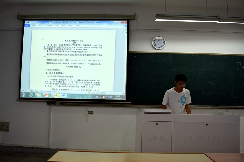 分享会结束后,社长陈政为大家介绍了学社在本学期试行的积分制实施方法和社团奖惩制度。这些制度获得了社员的一致好评。