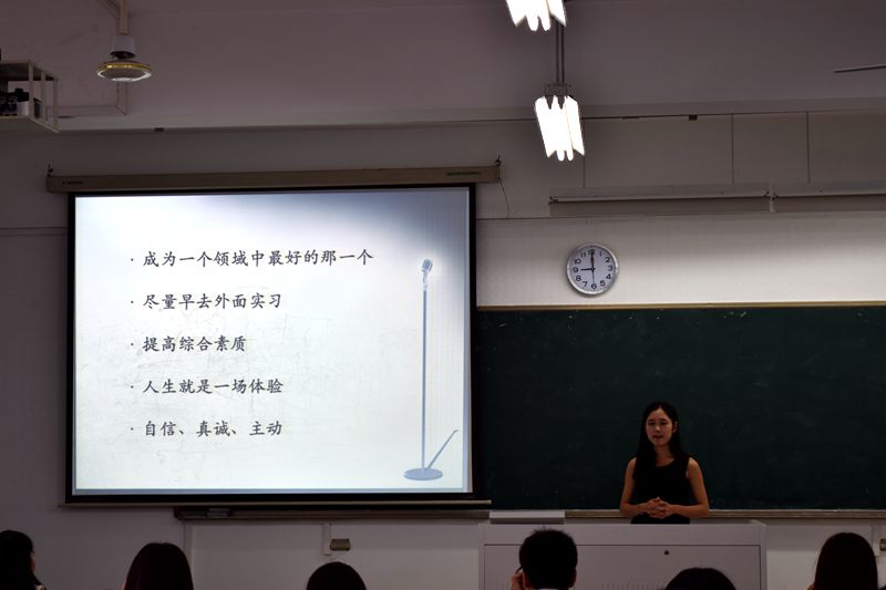 第二位分享的是与赵兴欢同赴新加坡学习的许姣。许姣从在新加坡的生活、关于创业和大学生活说明了把握当下、及时创业的重要性。她表示:“信念即自我实现预言,我们创造我们的现实”。许姣分享完毕后是十分钟的休息时间。在这休息期间,各负责人给大家下发了本次活动的反馈表。