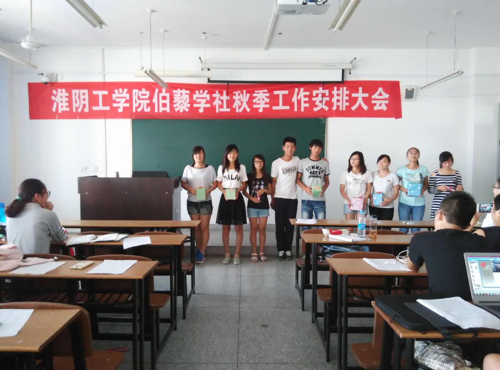 2015年9月9号,淮阴工学院伯藜学社2015年秋季工作安排大会在逸夫楼0412举行,全体陶学子参与了大会。