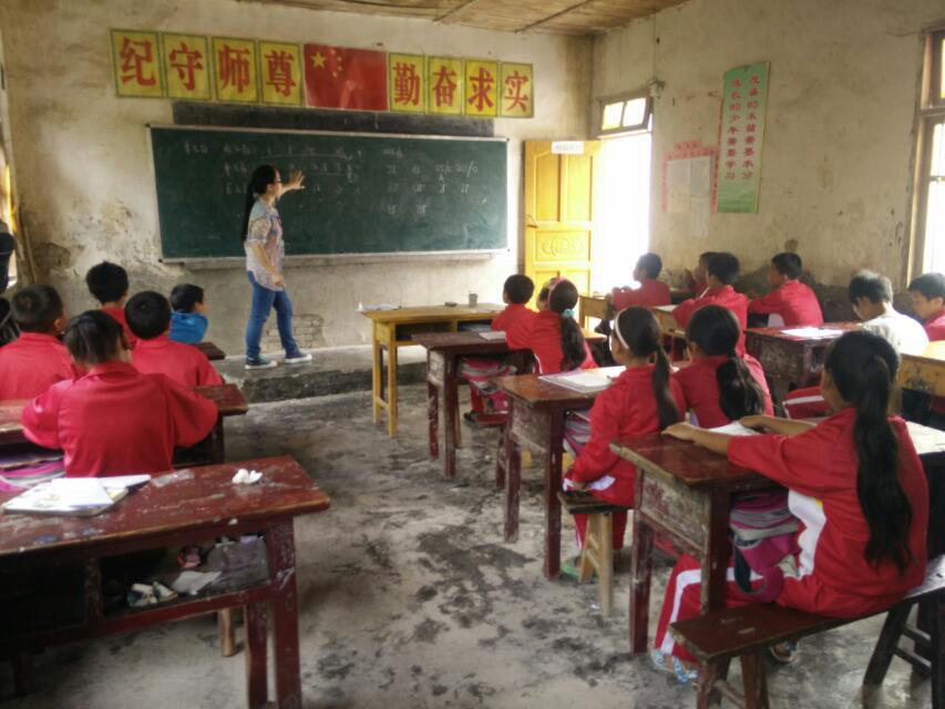 7月15日,经过了一天的休整,微光团队开始正式授课。一大早,70多个小朋友围坐在教室里,等待着小老师们的到来。第一阶段时,微光团队的小老师们先和小朋友们相互认识、了解,包括了解他们的兴趣和爱好,学习情况等,然后由授课经验丰富的志愿者先教学,经验缺乏的志愿者旁听学习。到了晚上,小老师们进行课程总结,取其精华,去其糟粕,不断调整完善课程,开设有数学、语文、英语、音乐、绘画、书法、手工等课程。几天的教课进行的很顺利,小老师很快和孩子们打成一片。孩子们亲手折纸、摘花做礼物,甚至有的把自己唯一的玩偶送给老师。然而有一天下了倾盆大雨,泥泞的山路难行,小老师们对步行回家的孩子们担心不已。第二阶段时,各个小老师就多了一项任务——分组送孩子们回家。这让志愿者们切身体会到山里孩子上学的不易。同时进行了家访,深入了解孩子们的家庭环境,他们大都兄弟姐妹很多,家离学校很远,除了上学,还要帮忙做农活,放牛、喂猪,捡柴,烧火做饭……他们瘦小的肩膀着实承载了很多。家访途中,孩子们喜欢拉着小老师的手,一路歌声,一路鲜花,一路欢声笑语。