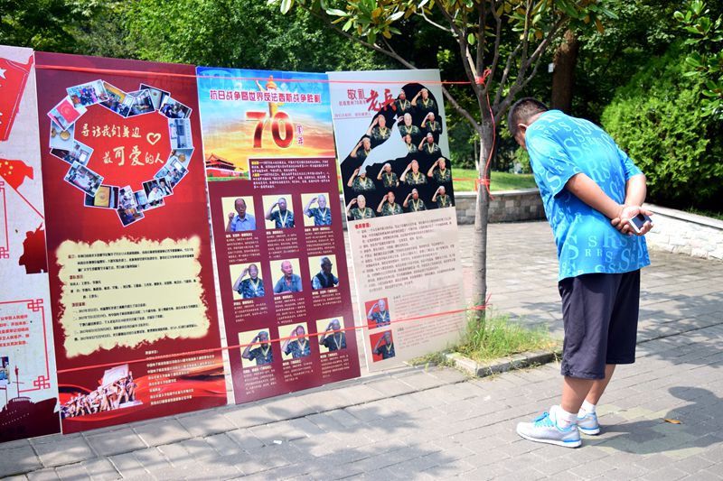 2015年9月3日是中国抗日战争暨世界反法西斯战争胜利70周年纪念日,也是南京农业大学伯藜学社陶学子们暑假“寻访我们身边最可爱的老兵——寻访南京新四军,八路军老兵”社会实践活动成果展示的日子。今天,以王世东、李逸凡等人为组长的陶学子实践寻访组在玉兰路开展了寻访抗战老兵成果展。