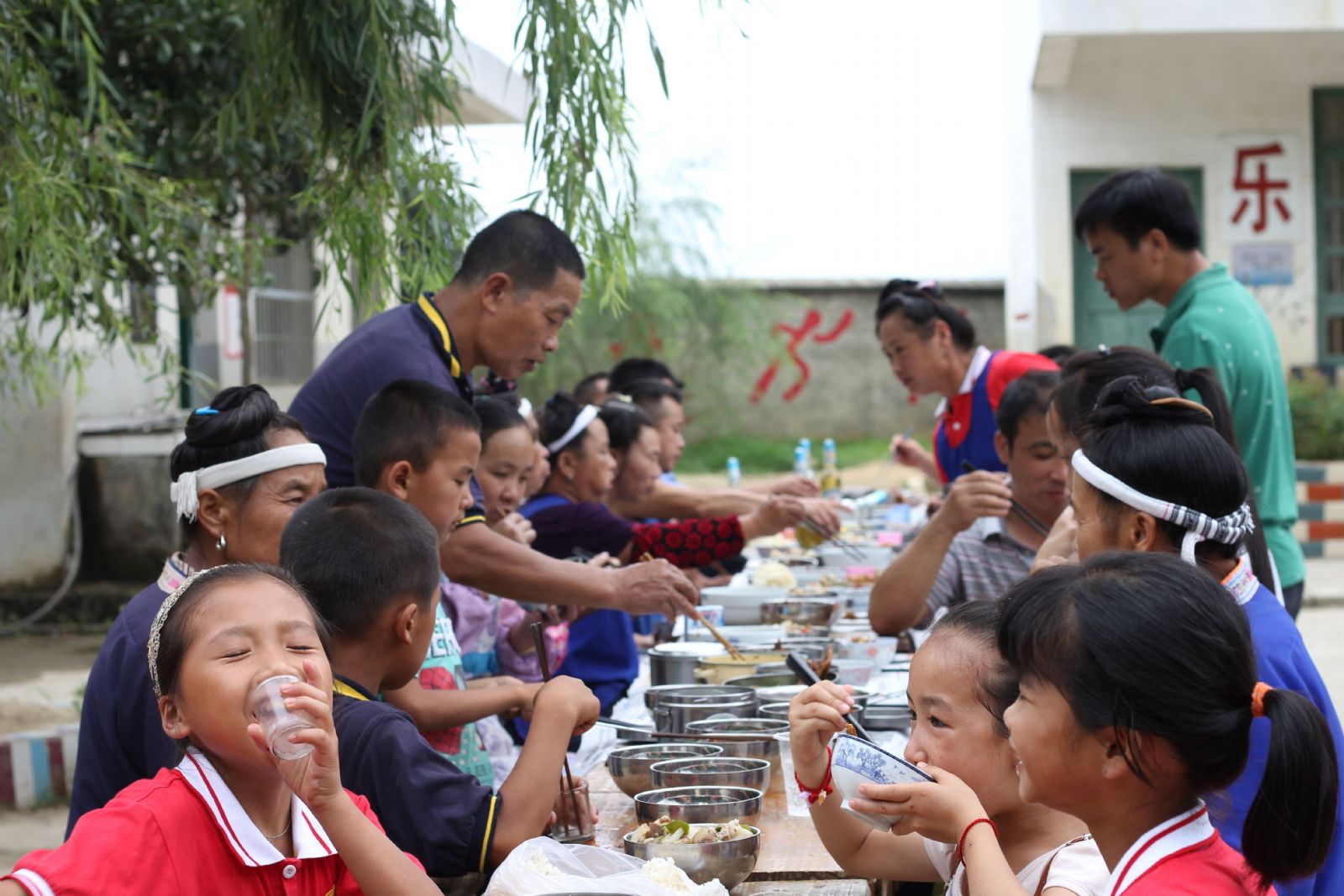 长途跋涉之后,志愿者们踏进古朴的侗寨,隆重的欢迎仪式让人难忘,热情好客的侗家人向志愿者们展示了他们的真诚,带有地方特色的食物让志愿者们一饱口福,精致的侗族传统服饰让志愿者们感受到不一样的民族文化。十五天的授课涵盖了音乐、美术、舞蹈、英语、建筑、礼仪等内容,志愿者们还根据孩子们兴趣的不同调整课程安排,此外,艺术学院的邹竣帆还利用放学后的时间帮助知了小学绘制墙绘。课下,志愿者们和孩子们“打成一片”,打乒乓球、老鹰抓小鸡……期间,志愿者们还积极参与到当地的特色节日“吃初六”以及高规格的待客形式“百家宴”,体验侗族的风土人情。