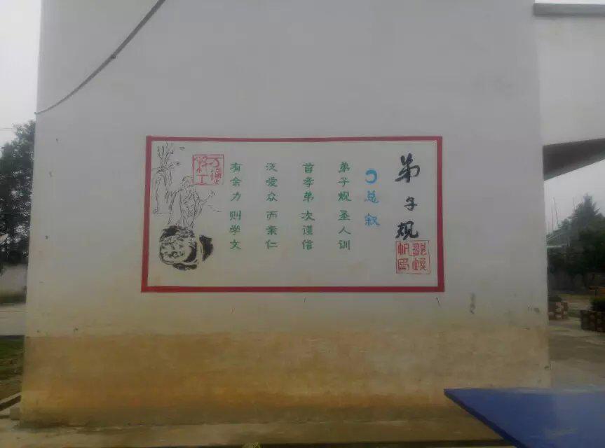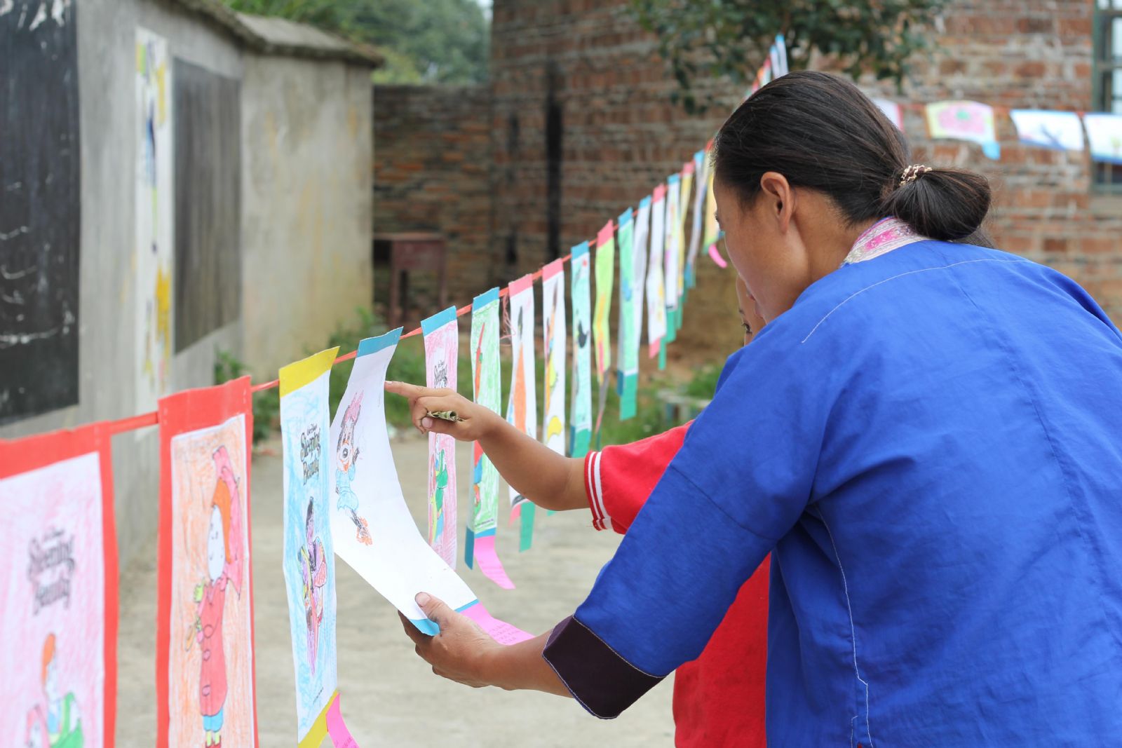 “百家宴”是侗族的特色风俗,顾名思义,“百家宴”指的是百家人食百家饭,每个人自愿从家里带一些食物来学校和大家共同分享。除此之外,本次“百家宴”还有另外一个非常重要的目的——支教成果展示。7月25日晚上和7月26日的上午,支教小分队都在积极筹备本次成果展示,将优秀的绘画书法作品进行展出,为校园的围墙绘制墙绘。接近中午,孩子们及其家长陆陆续续到达学校,在排成长龙的桌子上开始了本次“百家宴”,酸鱼、酸肉、杨梅酒等带有侗族特色的食物应有尽有,志愿者们与孩子家长打成一片,同时也大饱口福。