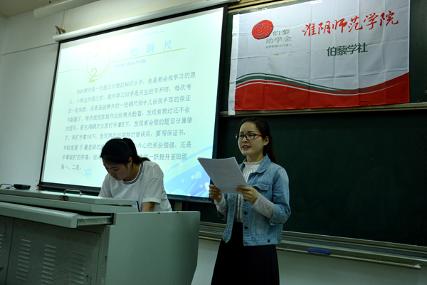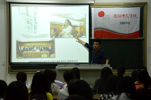 2015年江苏陶欣伯助学基金会伯藜之星评比落下帷幕,淮师陶学子王前、卓玲分获“励志之星”、“励学之星”,为了更好地树立陶学子先进典型,激励广大陶学子自立自强、奋发进取,引导更多的陶学子向身边的榜样学习。6月4日下午,淮师伯藜学社举办了伯藜之星分享会,百余名陶学子参加分享会。